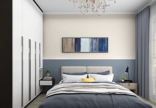 次臥則更加簡(jiǎn)潔一些,絕美的灰藍(lán),是僅次于高級(jí)灰的裝飾色彩,既有著灰色的溫柔高雅,也有藍(lán)色的沉靜內(nèi)斂,簡(jiǎn)單的設(shè)計(jì),溫馨且舒適。