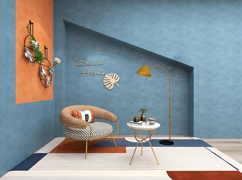 客廳背景墻,大膽的配色帶來了飄逸的跳躍感,亮藍色與亮橘色打破了空間的沉悶,米色的點綴使空間散發(fā)著暢快的氣息,完美展現(xiàn)極致個性。