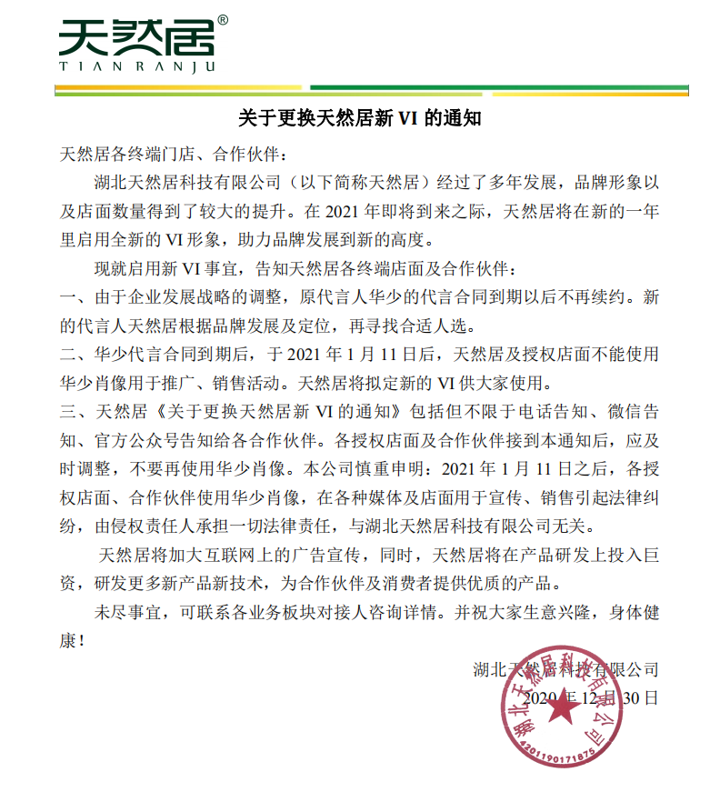 關于更換天然居新VI的通知