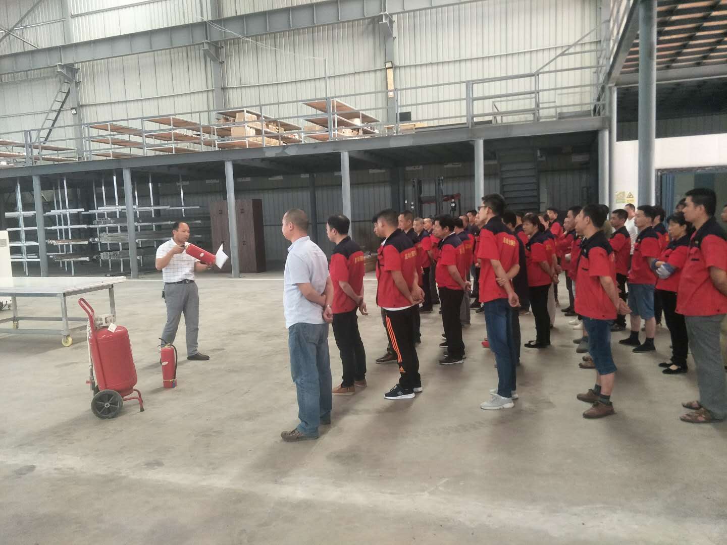 天然居產(chǎn)業(yè)園關鍵崗位員工迅速集合至生產(chǎn)車間,由天然居產(chǎn)業(yè)園生產(chǎn)總經(jīng)理張守偉先生對此次演習進行講解。他講解火災的危害,介紹滅火器的種類、滅火原理及使用方法;以及消防相關的知識點講解;并現(xiàn)場實操。