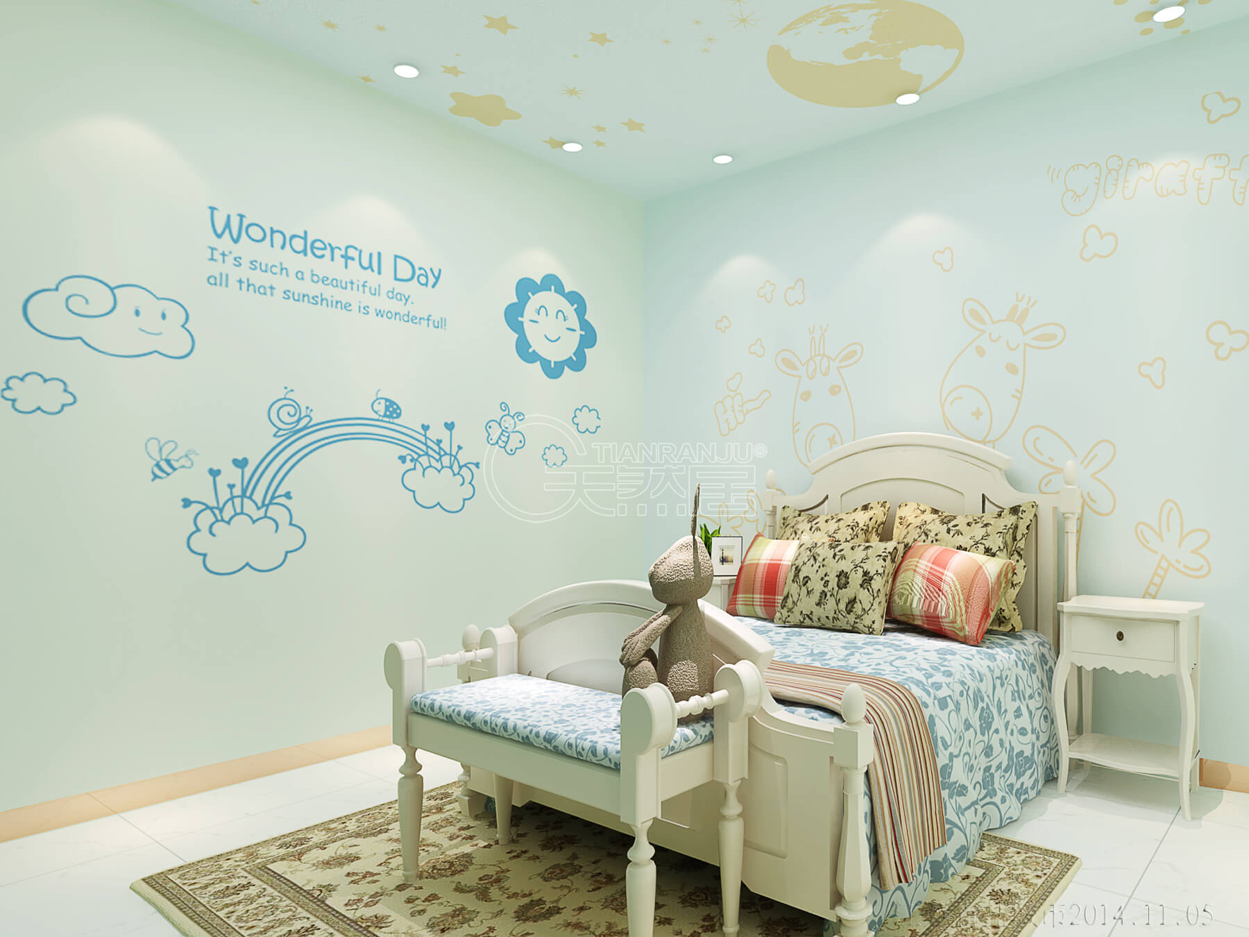 天然居硅藻泥兒童房的活潑可愛風(fēng)格與立體生動(dòng)圖案會(huì)讓孩子每天擁有好心情,同時(shí)給孩子一個(gè)充滿想象的空間,提升孩子的審美能力。