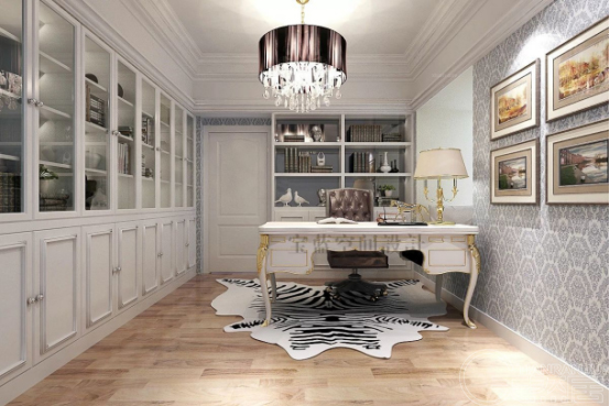 歐式硅藻泥書房裝修,福字文化、梅蘭竹菊、奔騰的駿馬、書法字畫以及一些山水圖案,這些都是典型的中式硅藻泥裝修書房案例,再搭配幾件造型精巧的瓷器、文房四寶及古樸的書桌,寥寥數(shù)筆,既古樸又雅致。