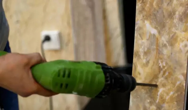 ▲現(xiàn)場(chǎng)用電鉆反復(fù)測(cè)試新品靜音軟木地板耐磨性能