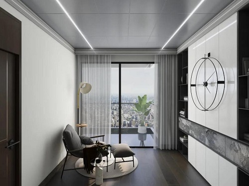 天然居全鋁大板不僅有助于提升空間的隔熱、散熱、隔音效果,更是有效提高安裝平整度,完美匹配整體空間。